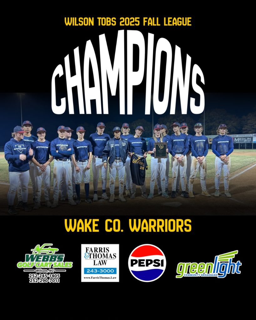 Wake County Warriors Victorious: Fall League Champions November 7, 2025 6:59 pm FOR FULL SCHEDULE & INFORMATION CLICK HERE